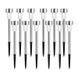 Premium quality stainless steel bright white LED solar lights. Adopt latest improved solar panel, provides better performance and prolonged usage time. The solar panel converts sunlight during the day time and recharge the battery. At night the light turn on automatically. Light assemblies, stake sections, connectors, and durable ground spikes are included. This energy-efficient, low-maintenance solar lights add a charming, decorative glow to your driveway, patio, or flowerbeds.