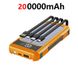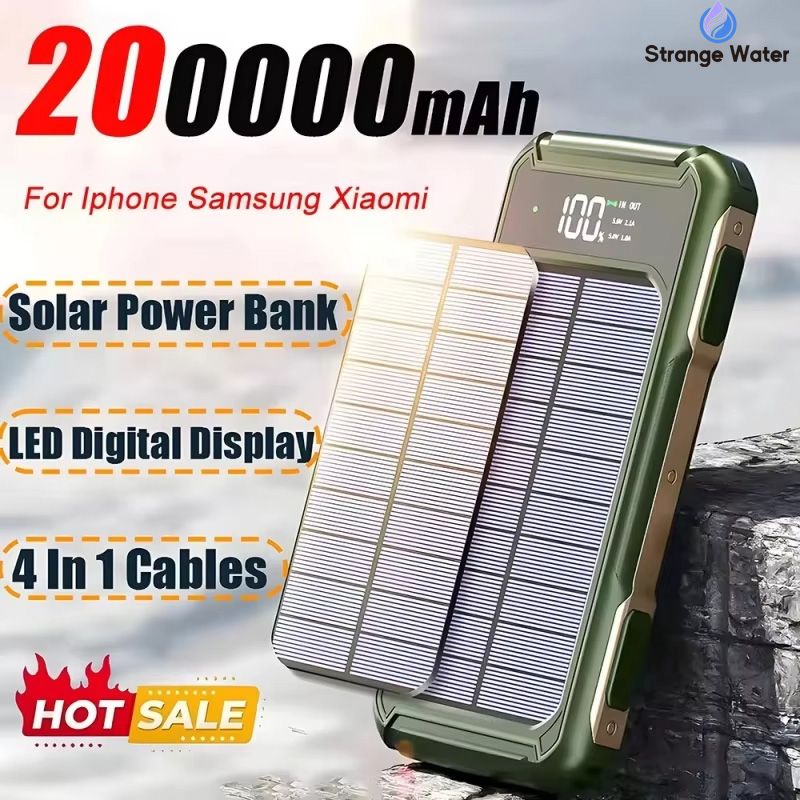 Die200000The mAh solar power bank with large capacity is an indispensable companion for everyone who values portable energy and convenience.Its robust capacity ensures that your device stays charged for a longer period, whether you are traveling, camping, or simply outside a power outlet.The Powerbank's intelligent digital display keeps you informed about your battery level, while the 4-in-1 built-in cable function allows for easy charging of multiple devices without needing an adapter.