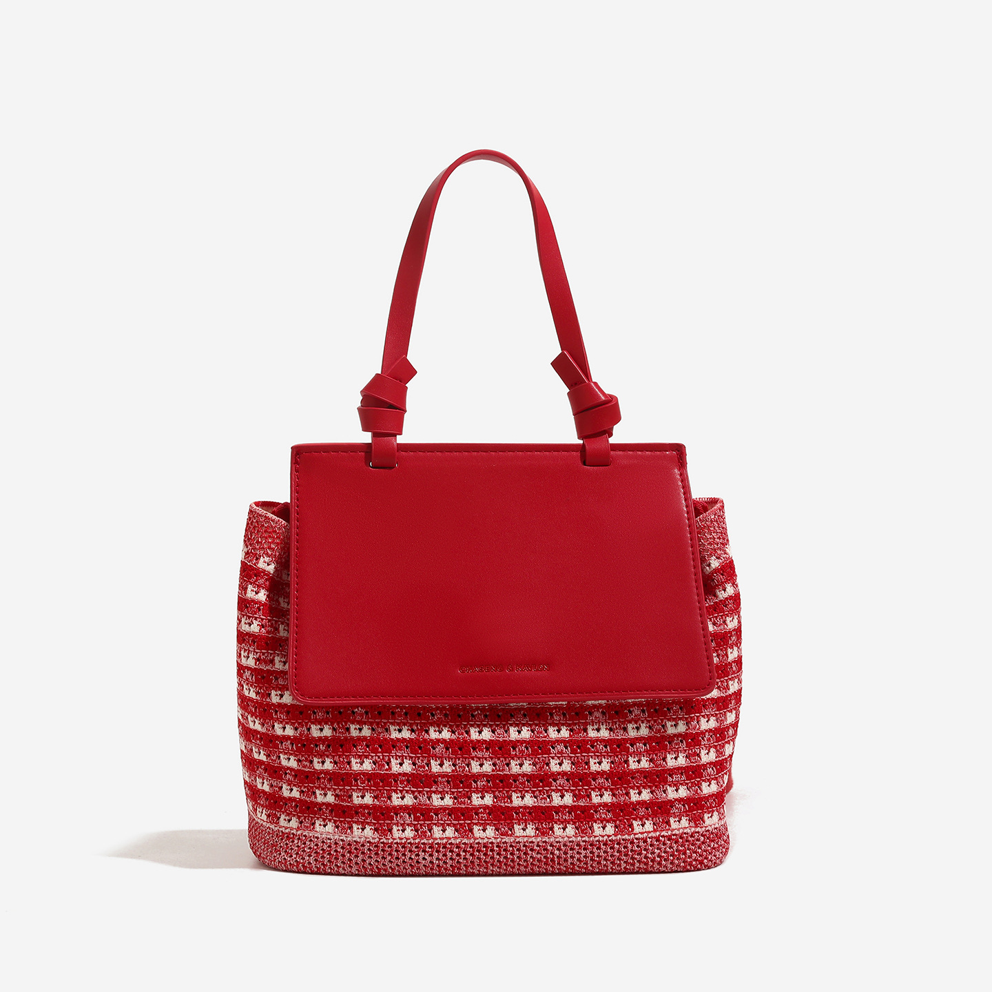2025 Korean Edition New High-end Fashion Color Block Knitted Commuter Multifunctional Small Backpack Handbag Autumn and Winter New Style