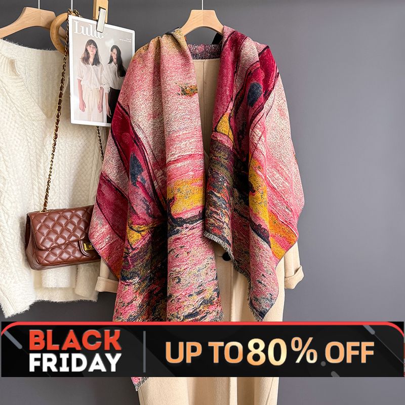 2025 New Oil Painting Series Sailboat Print For Women, High-End Cashmere Shawl, Autumn And Winter Warm Neck