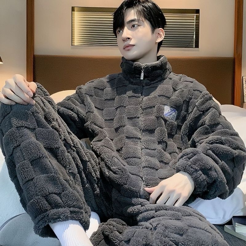 2025New Autumn And Winter Men's Home Clothes, Fashionable Pajamas, Men's Thick And Velvet Coral Fleece, Warm Flannel