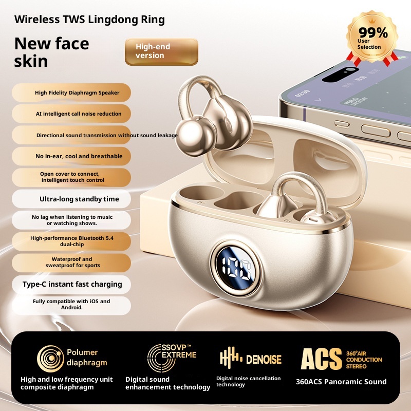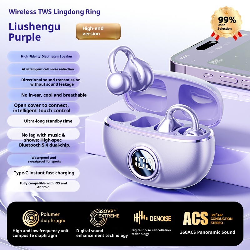 Brand:Chengruida,Transmission Range:15m,Functionality:Waterproof, noise reduction, ultra-long battery life, call function, voice control, supports music, digital display screen, 19037836944, other,Bluetooth Protocol:5.4,How to use:Clip-on Earrings,Is it single or double ear?:Bilateral Stereo Sound,Color:M97 Purple Bluetooth Earphones, M97 Gold Bluetooth Earphones, M97 Nude Bluetooth Earphones,Main downstream platforms:, , , , Independent Station, , Others,Main sales regions:Africa, Europe, South America, Southeast Asia, North America, Northeast Asia, Middle East, Others,We have authorized private labels available:yes,Is it exclusively for cross-border export supply?:yes,Customizable:Support,Is it a patented source product?:No,Mold Type:Private Model,What type of chip is it?:Zhongke Lanxun,Battery life:4-8 hours,Year/Season of Release:2024.9,Style:Sporty style,3C Certificate Number:2024010915630090,Waterproof performance:IPX4,Material:PC+ABS