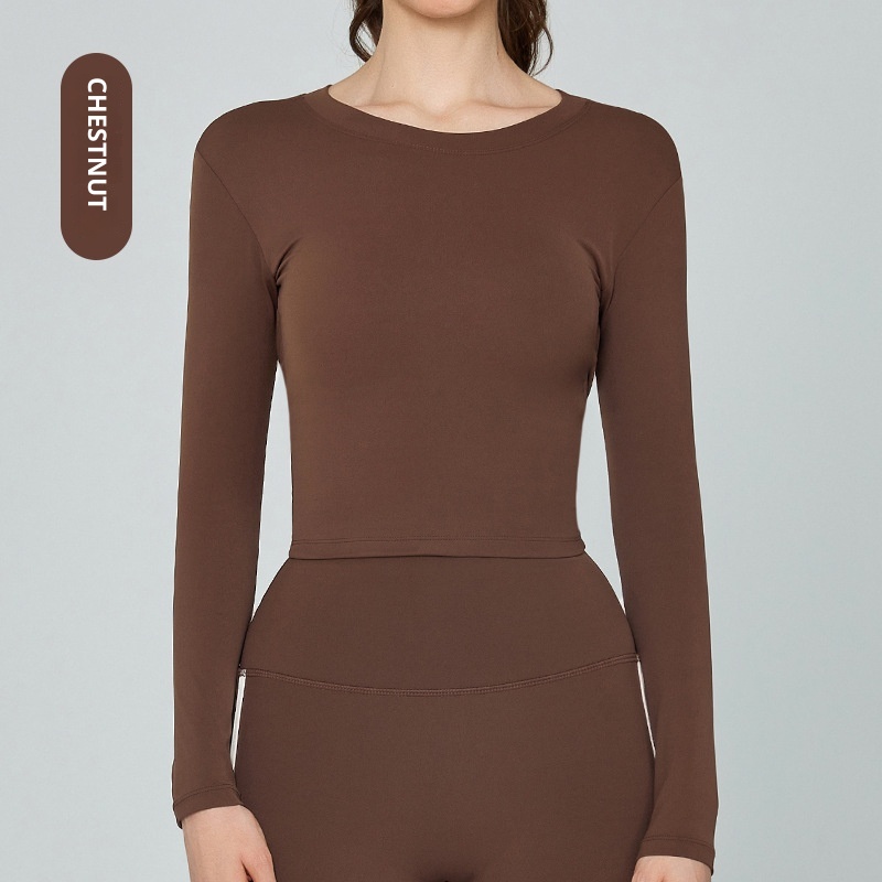 ActiveGo Autumn And Winter New Long-Sleeve Yoga Shirt For Women With Chest Pads, Sexy Back, Outdoor Running, Breathable Fitness