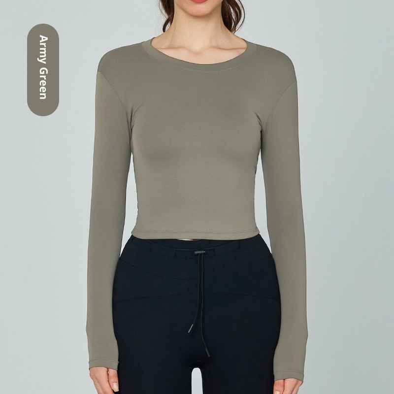 Product Source Category:In Stock,Product Category:T-shirt,Functionality:Breathable,Brand:Keep the Ball,Applicable Gender:Female,Pattern:Solid Color,Error margin:1~2cm,Suitable for the season:Summer, Spring, Autumn,Is it for export?:No,Is it in stock?:yes,Inventory Type:Complete order,Fabric Name:Single-sided spandex,Fabric Composition:Nylon,Fabric Composition Content:80,Lining Material Name:Spandex,Lining Composition:Spandex,Lining Material Composition Content:20,Item Number:DWTS124101,Color:Added bird egg green, raspberry red, army green, chestnut color, black,Size:S,M,L,XL,Applicable Scenarios:Ice and Snow Sports, Extreme Challenges, Hiking and Camping, Shooting Sports, Martial Arts Self-Defense, Dance Sports, Basketball and Volleyball Sports, Venue Amusement Equipment, Fishing Sports, Table Tennis and Badminton Sports, Other Ball Sports, Swimming and Water Sports, Accessories and Protective Gear, Other,Main downstream platforms:other,Main sales regions:Middle East, other,We have authorized private labels available:No,Is it exclusively for cross-border export supply?:yes,Sleeve Length:Long Sleeve,Wearing style:Pullover,Length of clothing:High-waisted,Clothing Designs:Tight-fitting,Patent Type:None,Foreign Trade Export Certification:None,Quality Inspection Report Number:None,Applicable to the target audience:Yoga Fitness Exercise Leisure,Product Attributes:Cross-border Sexy Backless Yoga Wear,Attributes:Fitness Sports Top for Beautiful Back,Company Name:Ningbo Anjiu Clothing