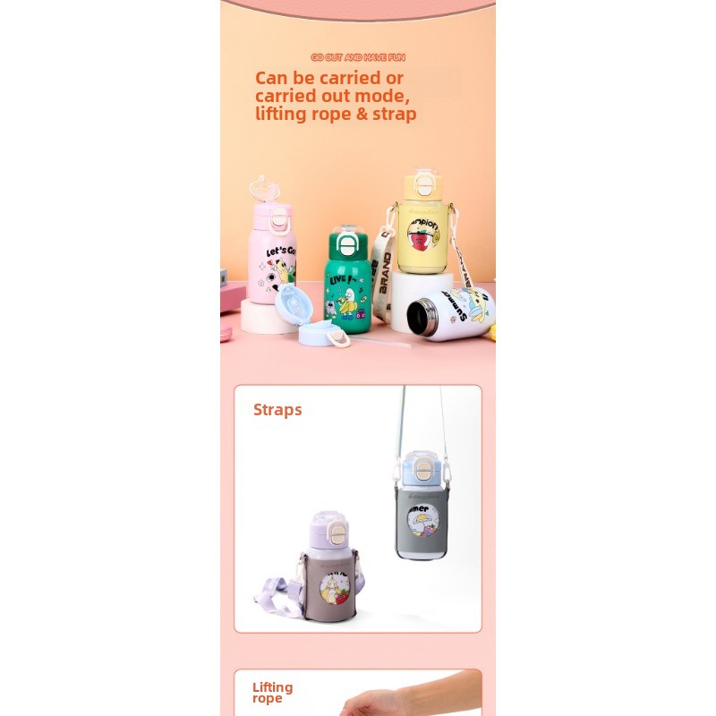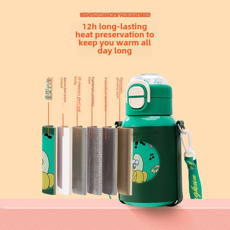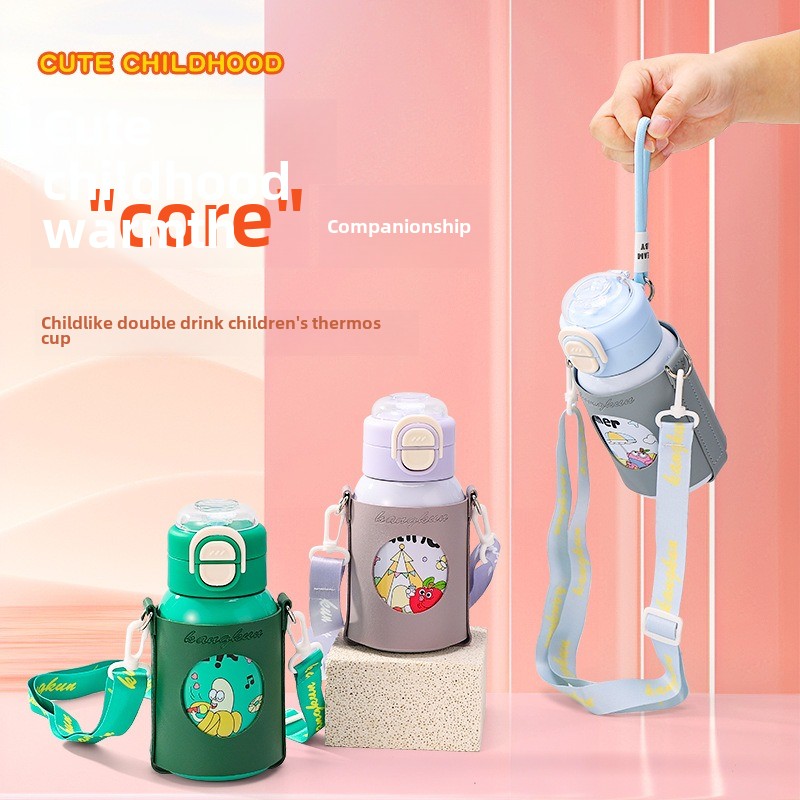 Aukštos kokybės vaikiškas termo puodelis iš 316 nerūdijančio plieno vandens puodelis berniukams ir mergaitėms, paprastas šiaudinis puodelis, nešiojamas nešiojamas puodelis_voghion.com