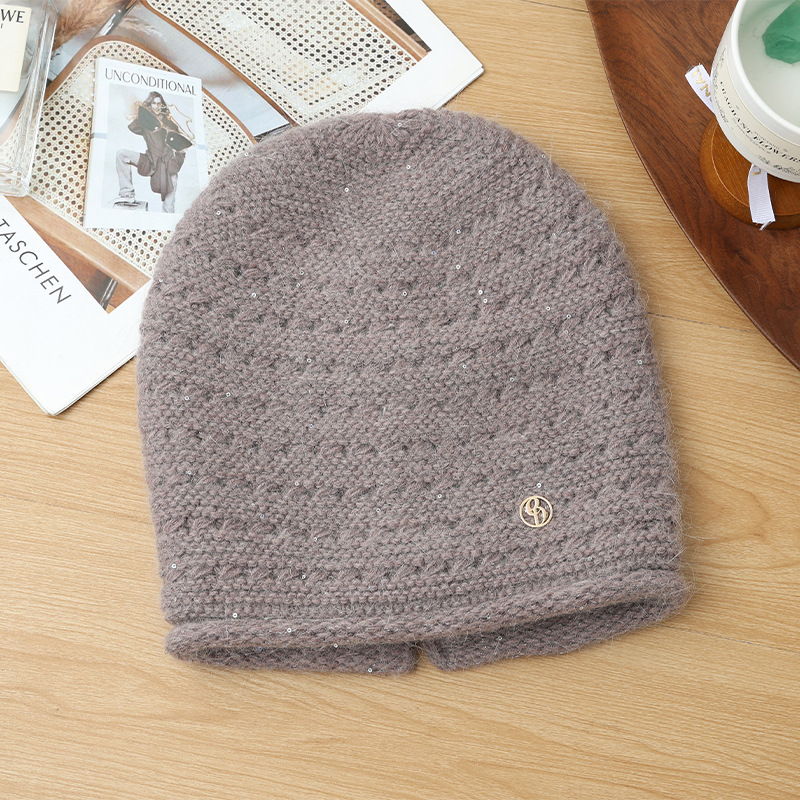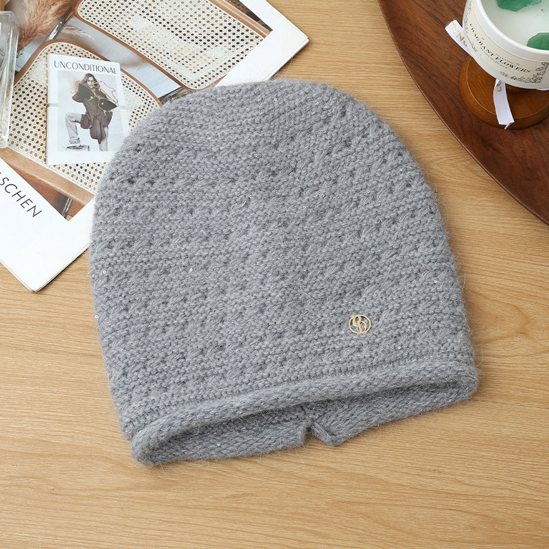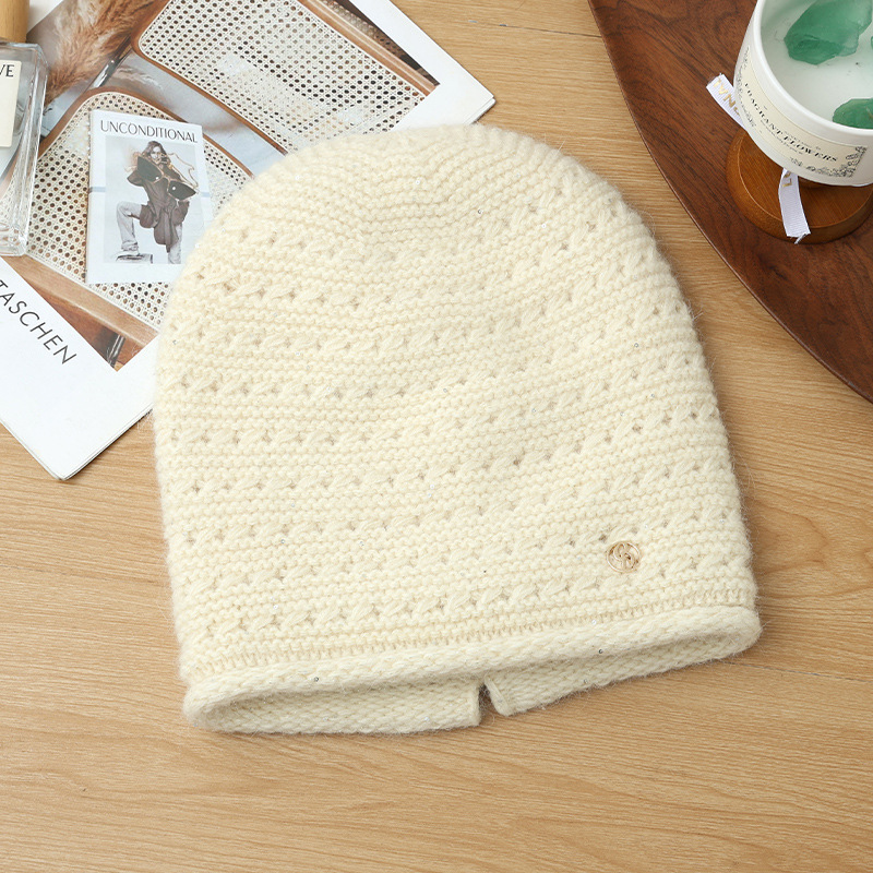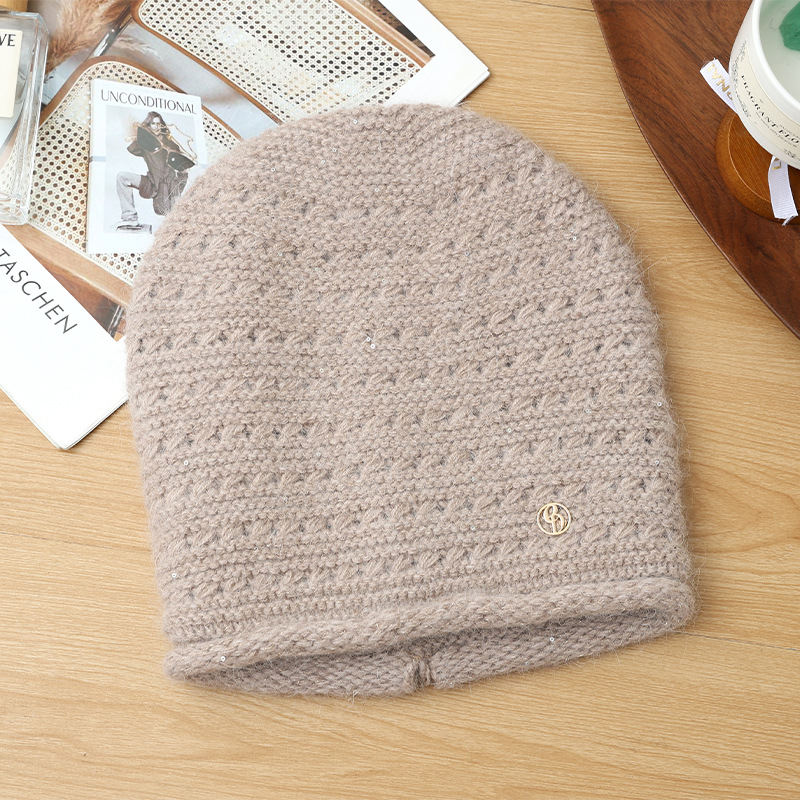 Autumn Winter Women Fashion Versatile Knitted Solid Color Head Wrap Warm Thickened Fleece Yarn Mom Hat