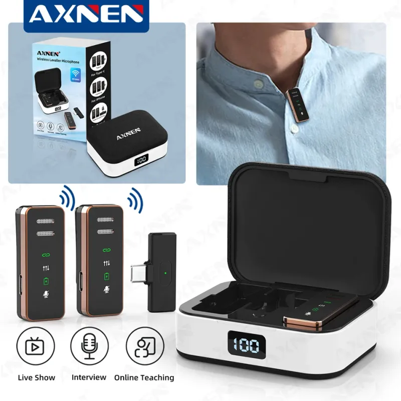 „AXNEN“ belaidis prisegamas mikrofonas, mini nešiojamas, triukšmo mažinimo garso ir vaizdo įrašymo mikrofonas, skirtas „iPhone Type-C“ su