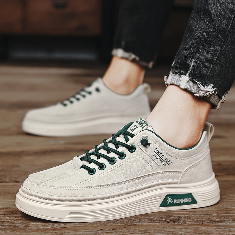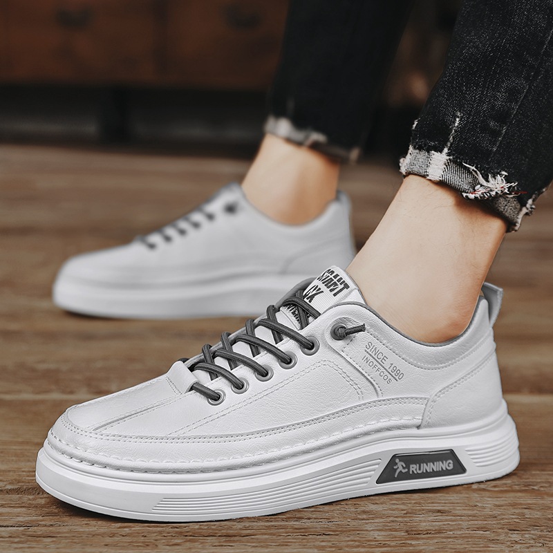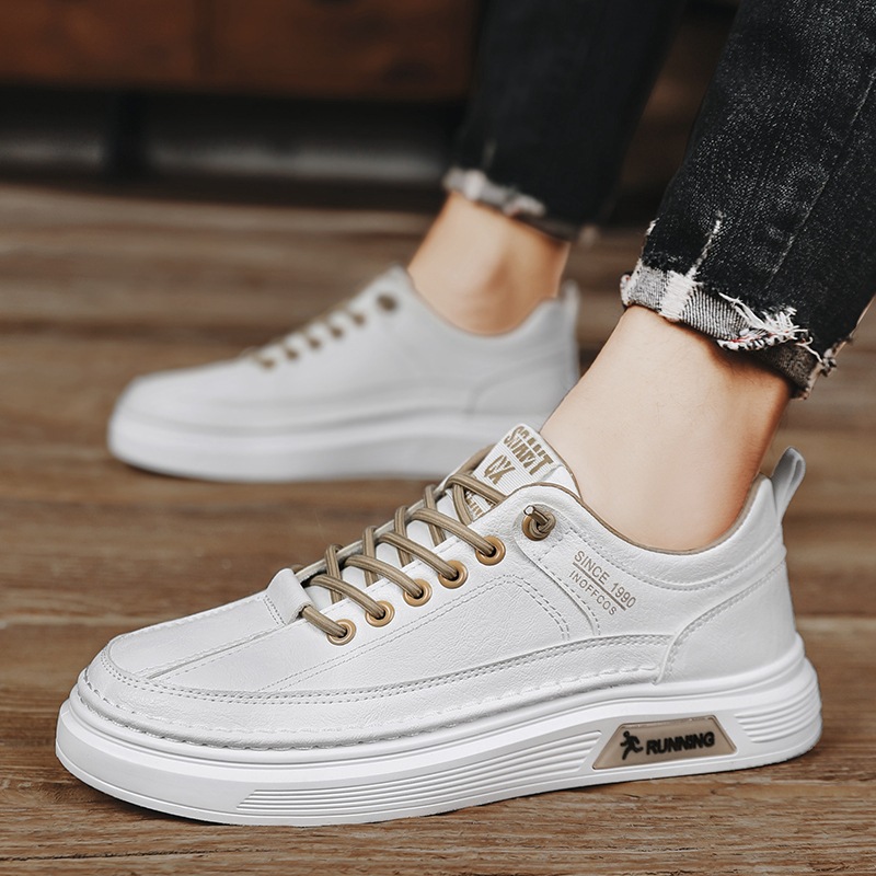 Board shoes for men, white shoes for students, autumn 2024 new low top flat bottomed men's shoes, leather sports and casual trendy shoes