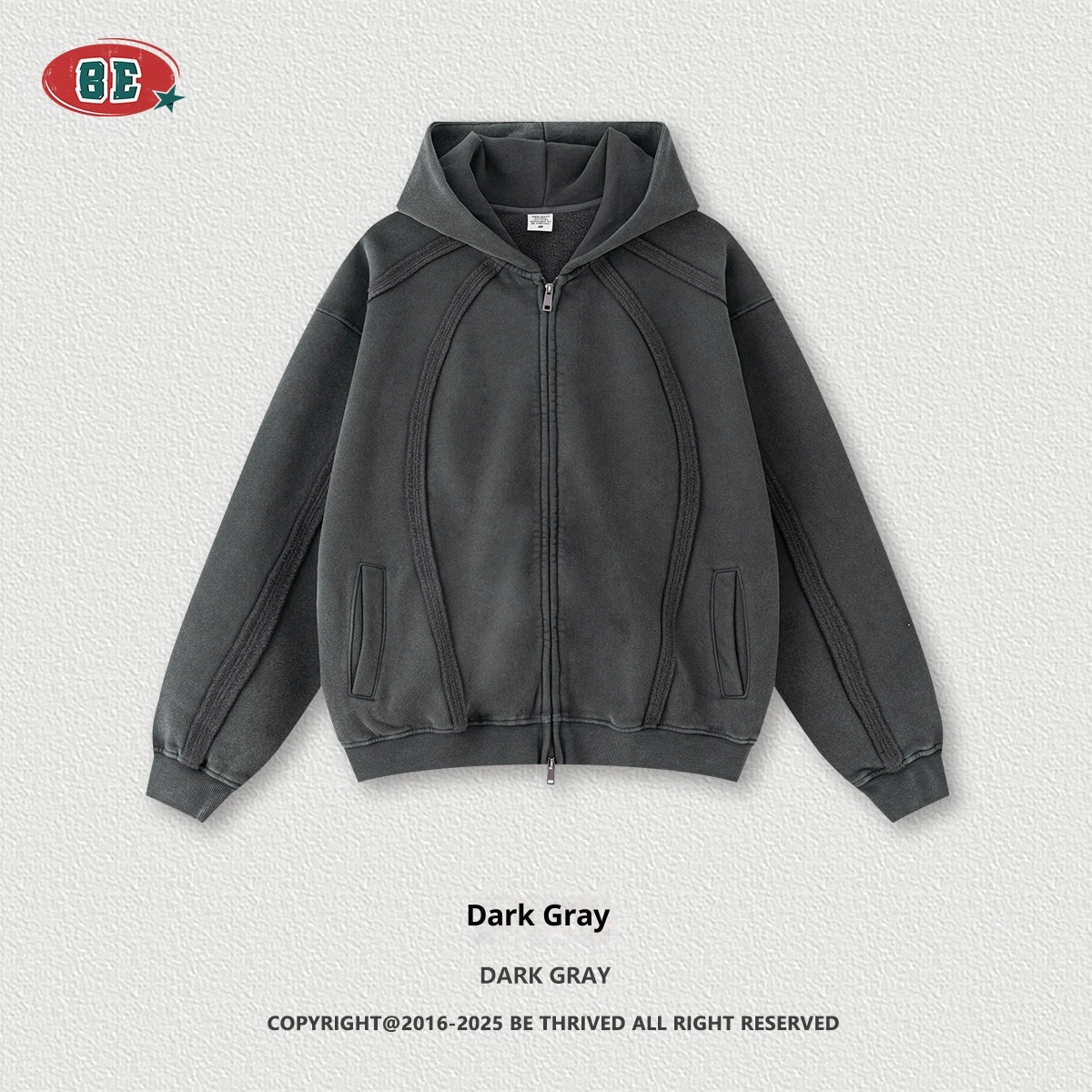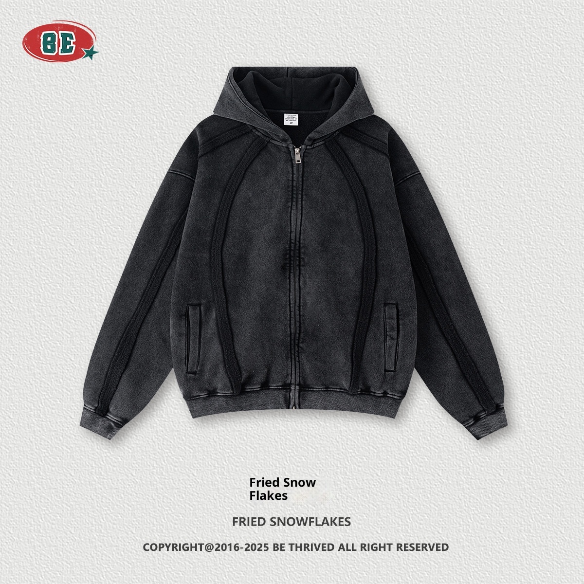Product Source Category:In Stock,Brand:BE THRIVED,Item Number:W25316,Year/Season of Release:2025 Winter Season,Is it a set or not?:No,Style:American Vintage,Bargain Category:Youth Fashion 18-24 Years Old,Design 1:Cardigan,With or without liner:With Inner Liner,Types of Inner Liners:Cotton Liner,Collar Style:Collarless,Neckline shape:Round Neck,Sleeve Length:Long Sleeve,Is it hooded or not?:Hooded,Front placket:Zipper,Thickness:Fleece-lined,Error margin:1-3,Suitable for the season:Winter,Is it in stock?:yes,Inventory Type:Complete order,Main fabric composition:Cotton,Content of the main fabric components:50%,Fabric Name:Cotton,Applicable Scenarios:Everyday,Pattern:Solid Color,Design details:Ribbed Hem,Design:Loose Fit,Craftsmanship:Washed and Distressed,Clothing Pocket Styles:3D Patch Pocket,Color:Dark gray, stir-fried snowflake,Size:S, M, L, XL, XXL,Suitable for everyone:Teenagers,Main downstream platforms:, , , , Independent Station, , Others,Main sales regions:Africa, Europe, South America, Southeast Asia, North America, Northeast Asia, Middle East, Others,We have authorized private labels available:yes,Is it exclusively for cross-border export supply?:yes,Sleeve Style:Drop Shoulder Sleeves,Original Design Source:yes,Is there a quality inspection report?:No,Gram weight:360G,Suitable age group:adult,Applicable Gender:Male,Product Category:Fleece Sweatshirt