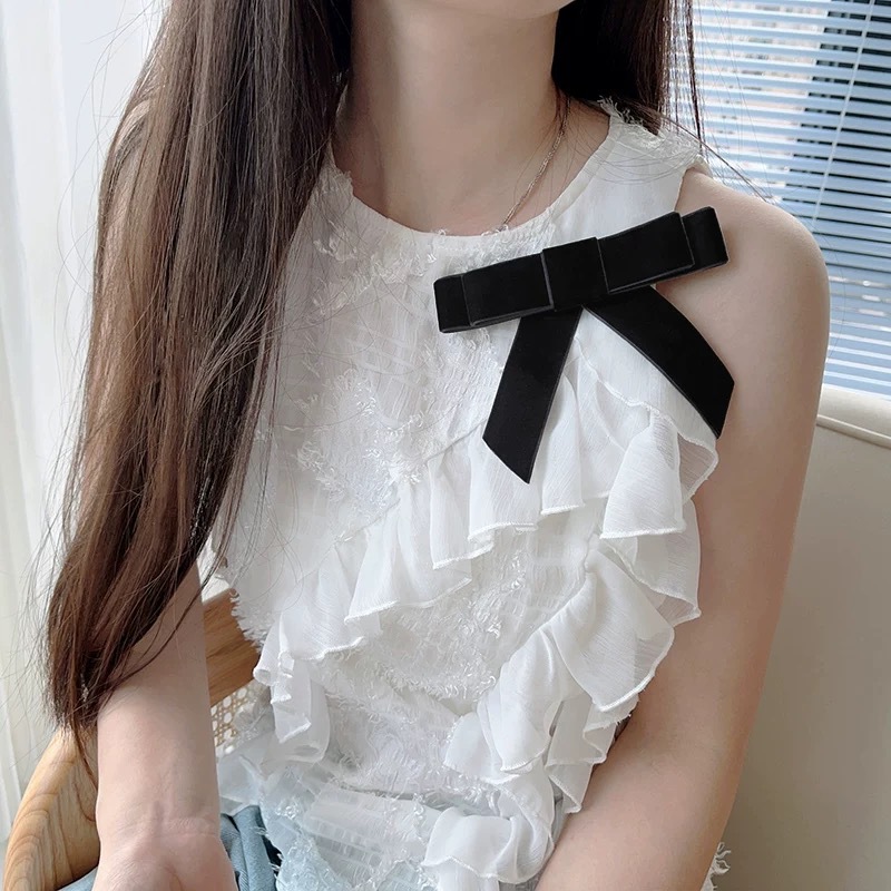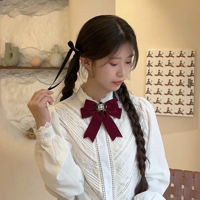 Internet Celebrity Style Bowknot Brooch Collar Flower Pin Fabric Ribbon Velvet High-end Camellia Brooch Clothing Accessory
