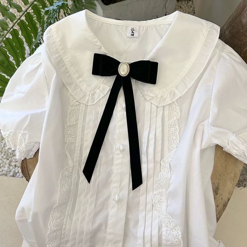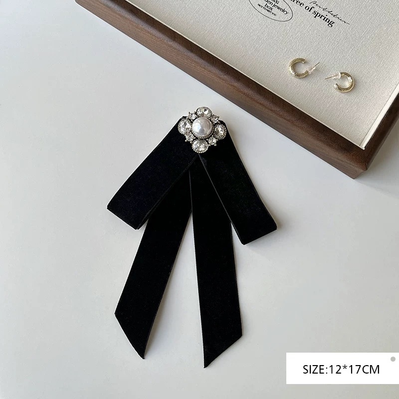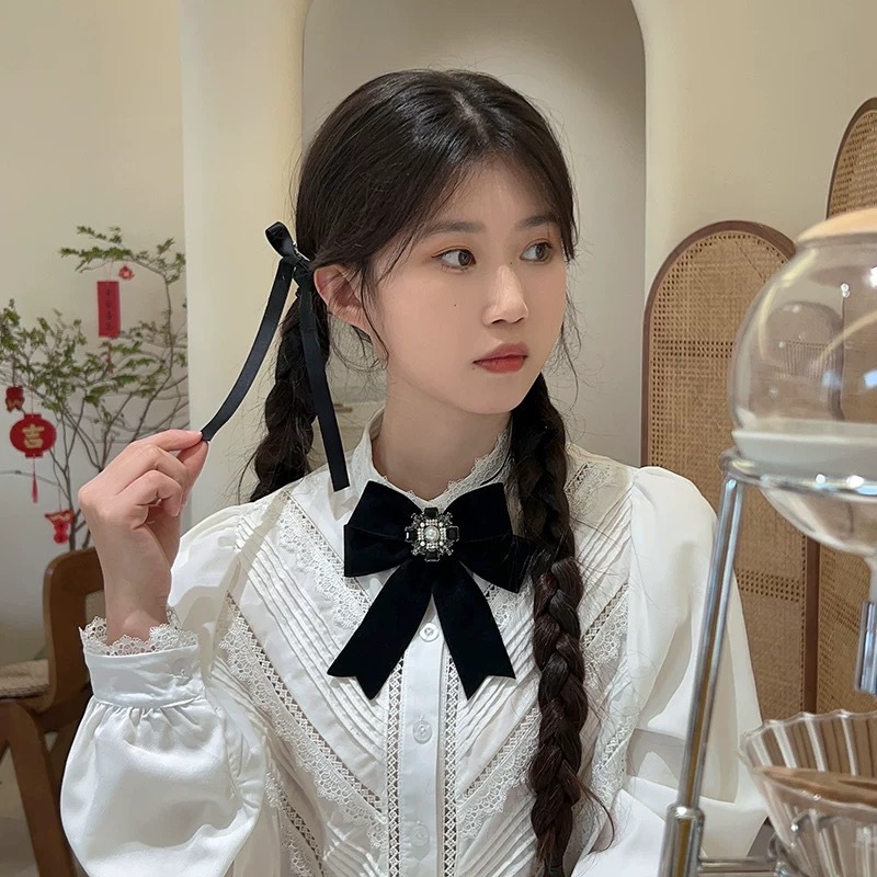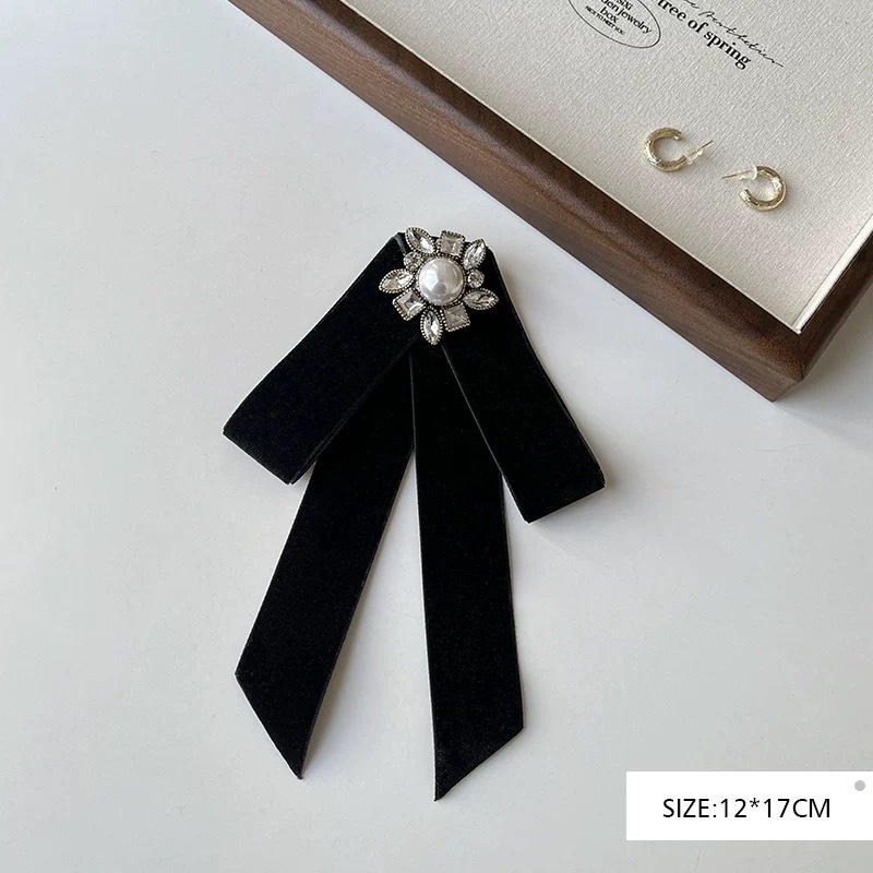 Internet Celebrity Style Bowknot Collar Flower Pin Fabric Ribbon Velvet High-end Camellia Brooch Clothing Accessory