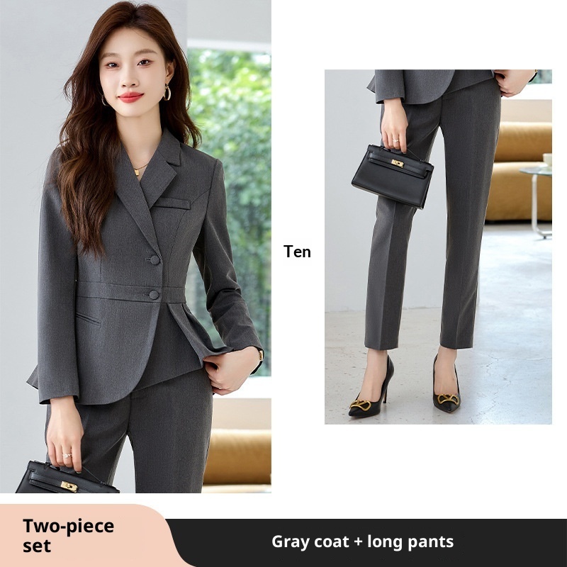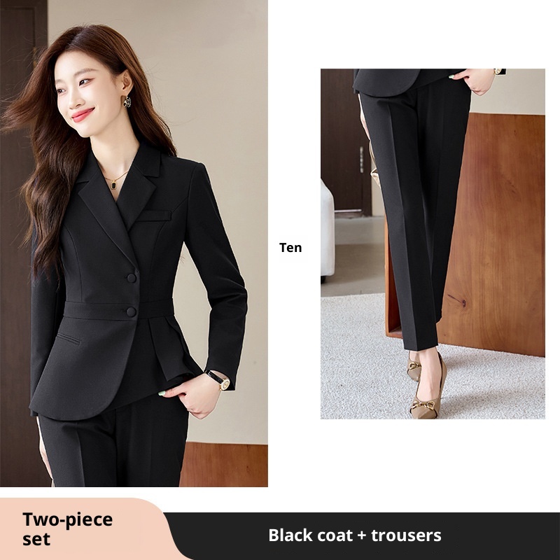 ChicShe Women's Suit Set With Feel, Slim Fit, Elegant Ruffled Hem, Professional Wear, High-End Jewelry Store Front Desk Autumn