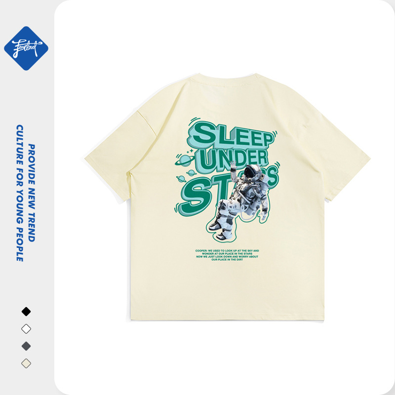 China-Chic Astronaut Printed Men's Short Sleeve T-shirt 220g Loose Large Street Hip Hop Couple Backing Shirt