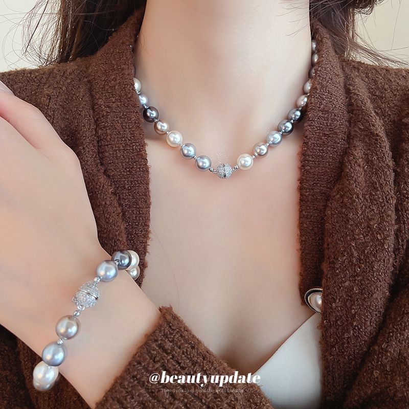 Cirkonio magnetinių perlų vėrinio apyrankių rinkinys, paprasta madinga raktikaulio grandinėlė, aukštos klasės ir lengvas prabangus aksesuaras