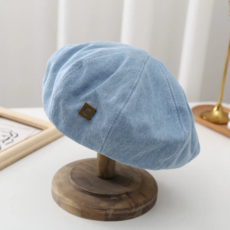Denim Berets Hat Retro Casual Spring and Summer Shade Painter Cap Korean Alphabet Blue Beret Women's Hats