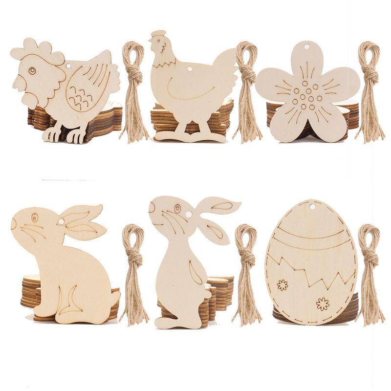 Easter Party Crafts Ornaments Creative American Home Decoration DIY Hand-painted Rabbit Wooden Egg Hanging Ornaments