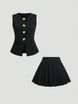 Step into effortless style with this sleek black two-piece set. The pleated mini skirt adds movement, while the sleeveless top keeps it cool and polished.