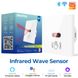 --【Sested location】 *Kitchen installation: avoid oil stains on your hands * Bathroom installation: Avoid touching unclean things on your hands * Doorway installation: Avoid bringing unclean things outdoors into the house, which will affect the health of the family *Bedroom installation: you can operate it by waving your hand at night, you dont need to touch the exact position, open it Lights are very convenient 【selg point】 --[Infrared Sensing]: No need to touch the switch, remote operation, safer and healthier --[Wifi+Bluetooth Dual Mode] Connect to the network faster. The speed of connecting to the network is 3 times faster than that of WiFi single-mode, and the dual-mode WiFi+Bluetooth is more stable and faster --【APP remote control】Control the switch anytime and anywhere through the mobile phone APP --【Voice Control】Use with Echo and Google Home, Tmall Genie --【Set Timing】Turn on and off connected devices at a specified time. Schedule your childs lights to be turned off to let them know its time for bed. --【Tempered Glass Panel]】Resistance to deformation and fading, easy to maintain and clean, prevent scratches --【Share function】Share with family members for common control --[Group function] You can turn off or turn on the devices of the group together, which is more convenient 【parameter】 Input voltage: 100-240V 50/60Hz Wiring: Neutral wire required Induction distance: 8CM Power: 3-500W Size: 86*86*35mm Application: Smart Life Wifi Type: 2.4GHZ 802.11b/g/n Notice: 1. Tuya series products do not support all Samsung devices. 2. Bluetooth is only used for network signal connection and cannot be used alone. WIFI+Bluetooth is more stable