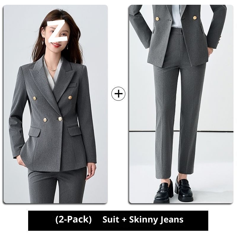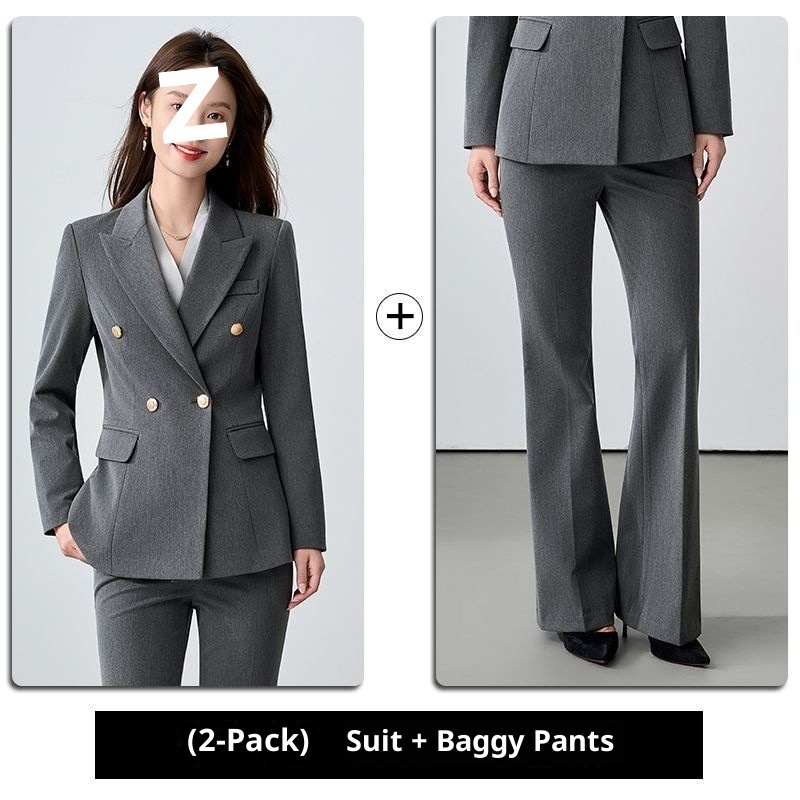 girl Girl Gray Set For Women, Double-Breasted, Petite Formal Wear, College Student Exam Interview Professional Suit