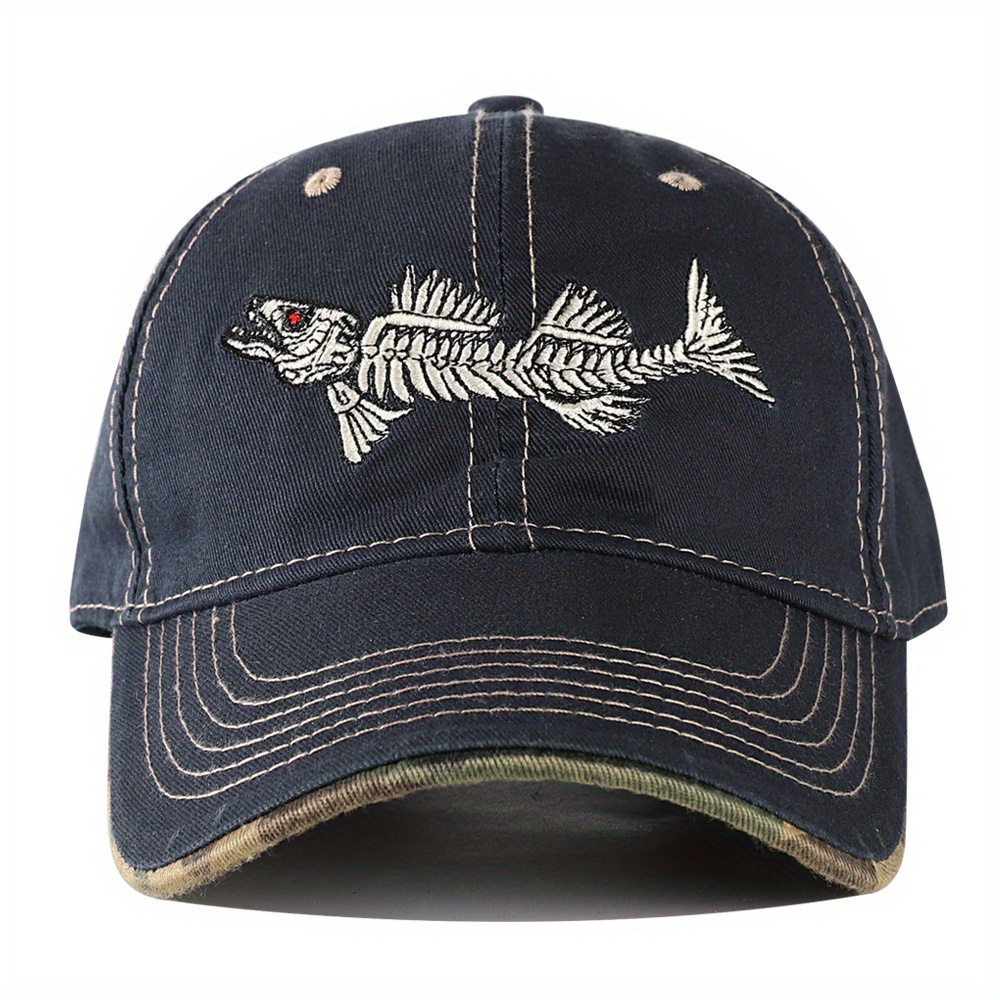 New Men's Firm Hat 3D Fishbone Embroidered Baseball Cap Outdoor Men's Fishing Hat Wide Brim Fishing Hiking Climbing Hunting Hat Unisex Breathable Four Seasons Commuter Style Outdoor Activities Sun Hat Cowboy Hat Dad Hat For Youth