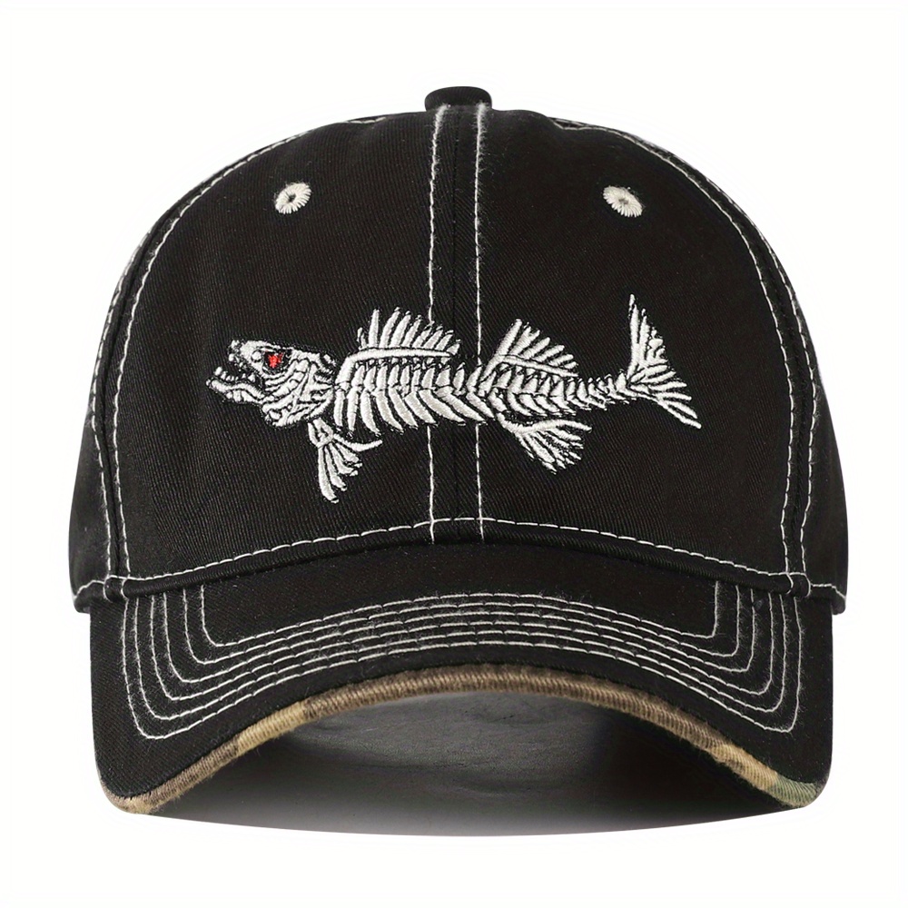 New Firm 3D Fishbone Embroidered Baseball Cap Men's Wide Brim Fishing Hiking Climbing Hunting Unisex Breathable Four