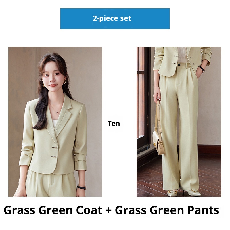 GraceChic Green Short Blazer For Women, Autumn Winter 2024 New Style, Elegant And Fashionable Suit With Wide-Leg Pants,