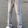 Vyriški drabužiai, amerikietiško stiliaus, skalbti šviesiai pilki, dirbtinai nusausinti, vienspalviai džinsai vyrams ir moterims su neapdorotu apvadu, paprastos tiesios kelnės