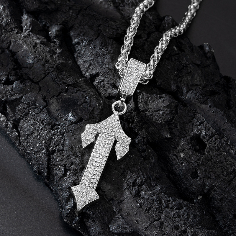 Hip Hop Diamond Studded Letter Necklace Pendant Popular European And American Item Big Sword Letter Long Men's Trendy Chain
