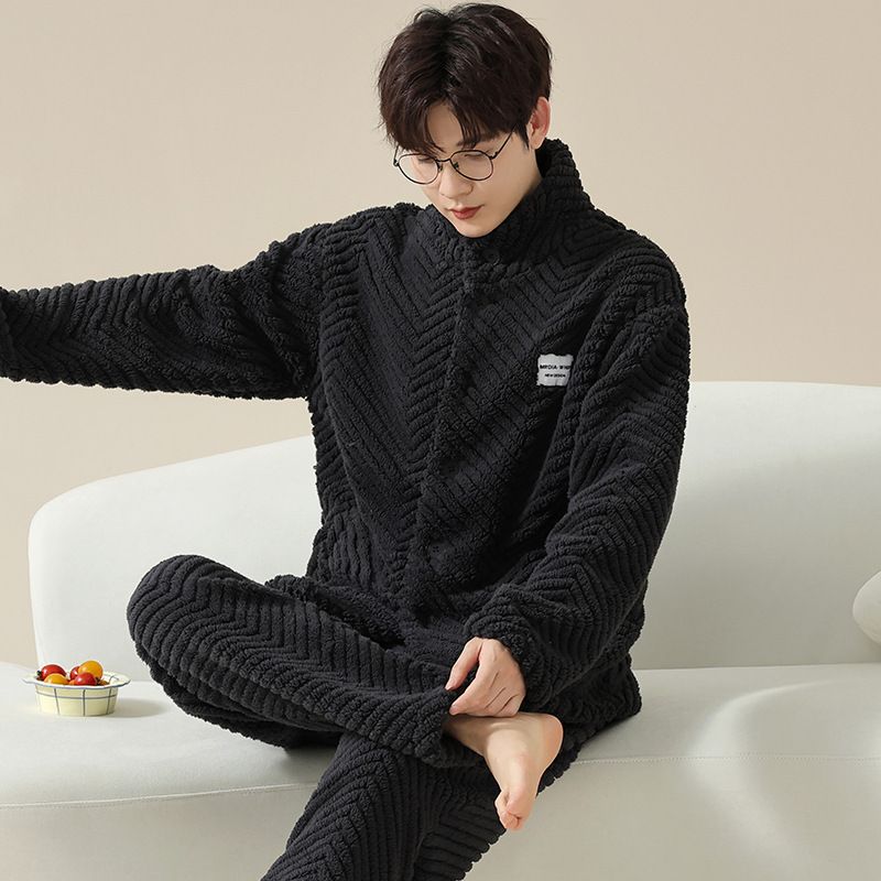 Men's Autumn Coral Velvet Home Clothes with Thickened and Velvet, Autumn and Winter Men's Flannel Outfit Set