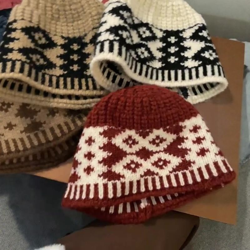 Korean Retro Dia Plaid Fisherman Hat for Women, Autumn and Winter, Face Slimming, Versatile Color Block, Large Head Circumference, Knitted Wool Hat