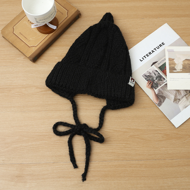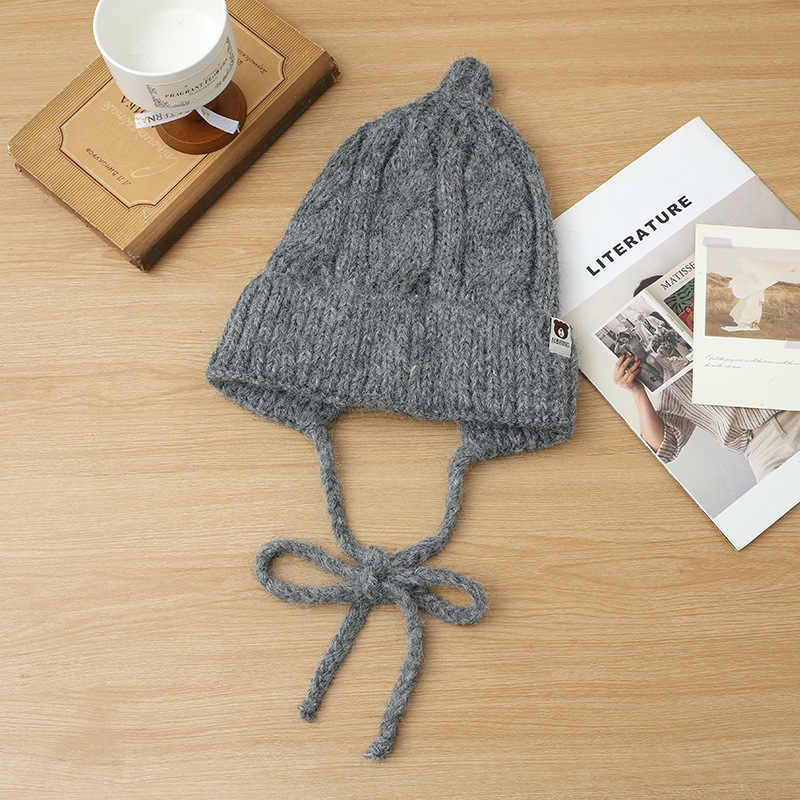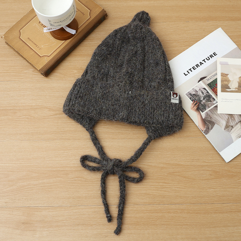 Korean Version Versatile Bear Patch Strap Knitted Autumn Winter Fashion Retro Pullover Outdoor Casual Warm Hat New