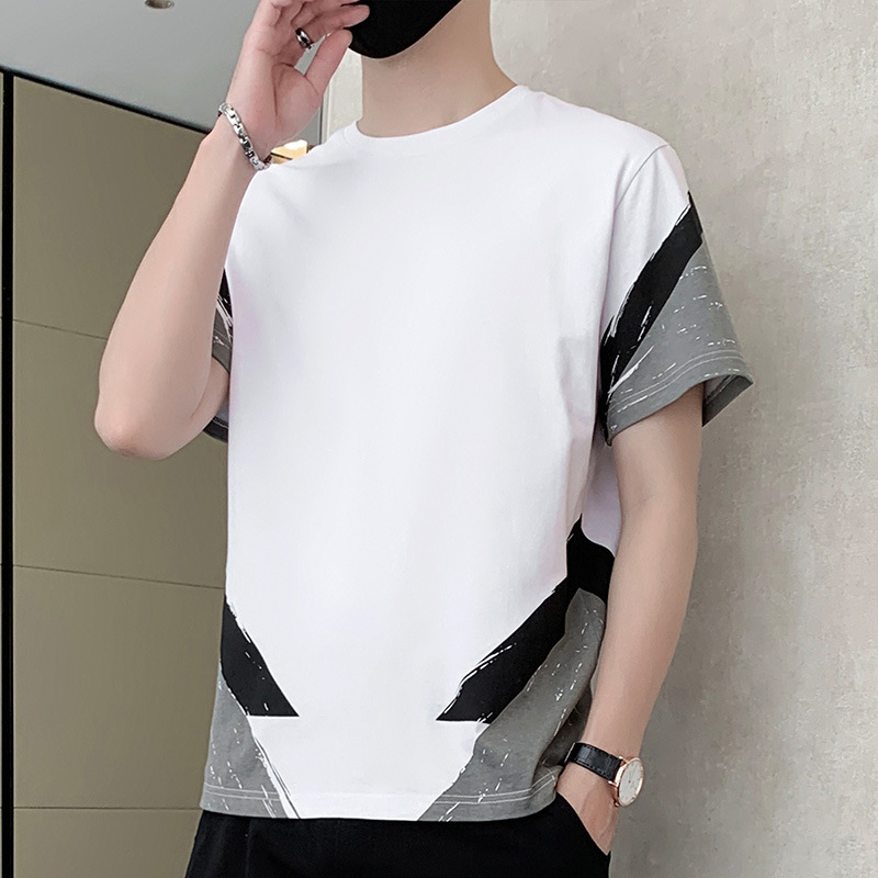 Medvilniniai šortai vyriškiems vasaros stiliaus laisvo kirpimo drabužiams, madingi studentiški marškinėliai apvalia iškirpte ketvirčio rankovėmis.