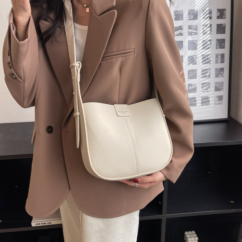 Minkšta odinė moteriška rankinė, 2024 m., nauja, madinga rankinė per petį su didele talpa laisvalaikio kibiro krepšiu.