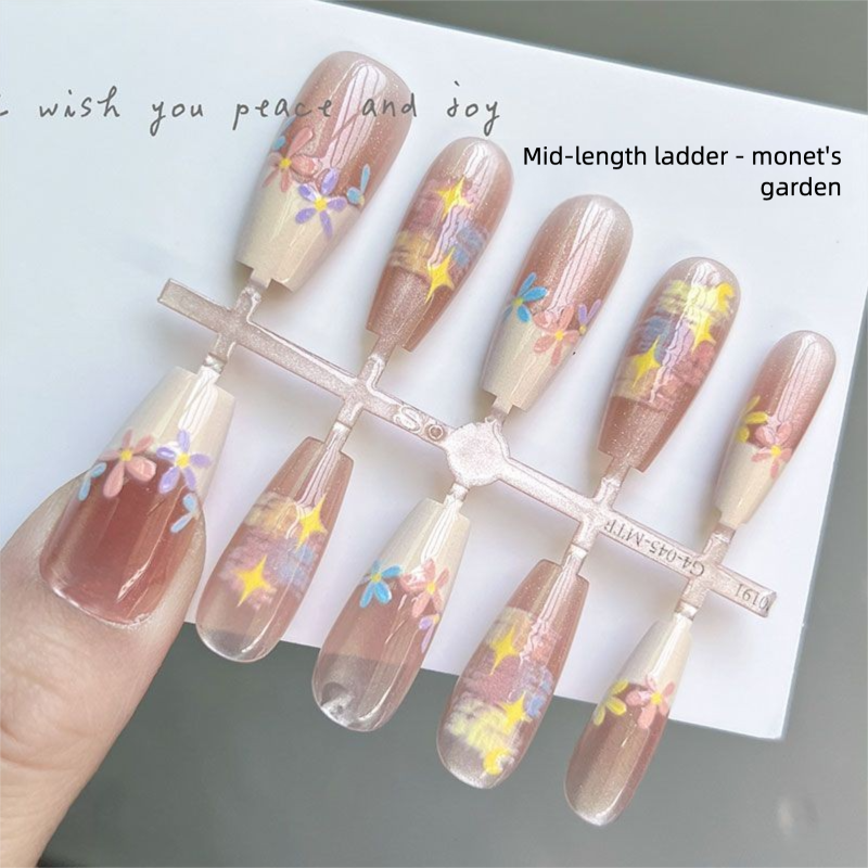 Monet Garden Cat Eye Short Detachable New Whitening Finished High-end Art Nail Tips Wearable Stickers Pre-made