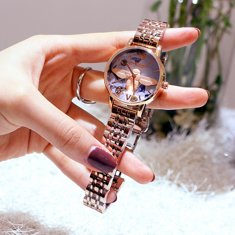 Moteriškas madingas „Instagram“ stiliaus „Little Bee“ plieninės juostos mechanizmo kvarcinis vandeniui atsparus studentų laikrodis
