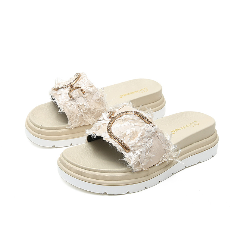 Vasaros paplūdimio basutės ir šlepetės moterims, avinčios storapadžius madingus „Tide Net Red Muffin 2023“ naujus plokščiapadžius šlepetes