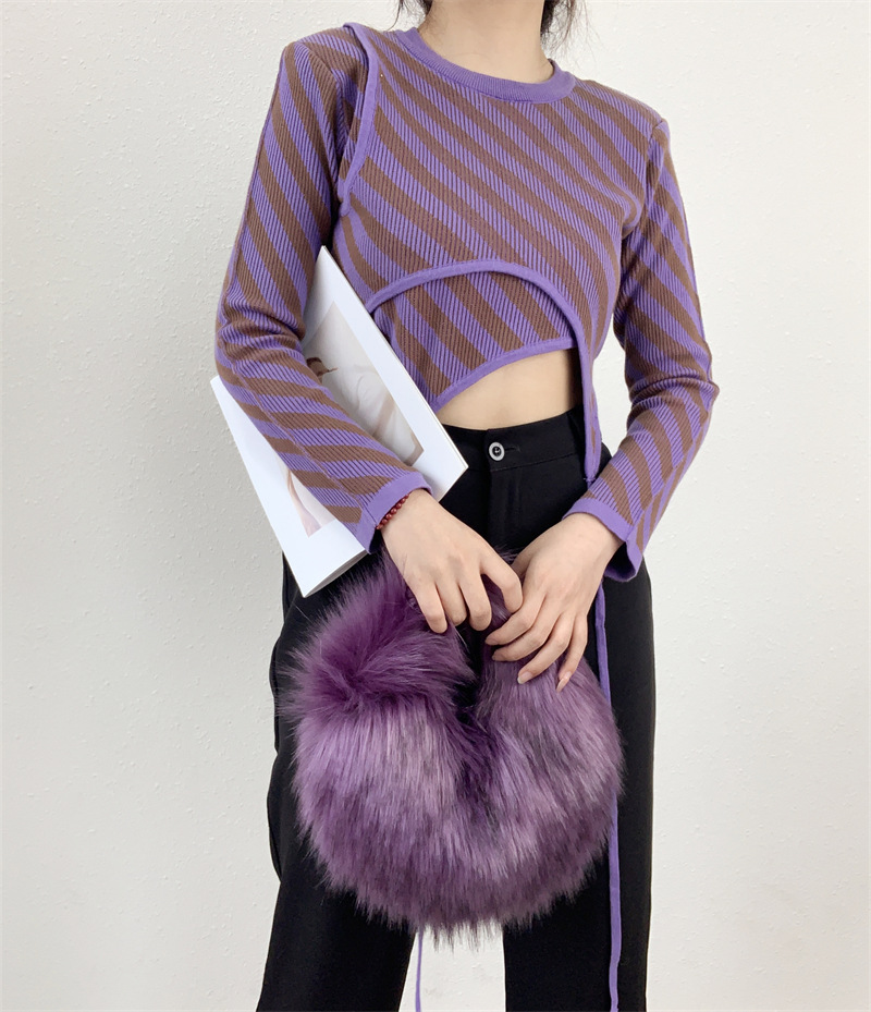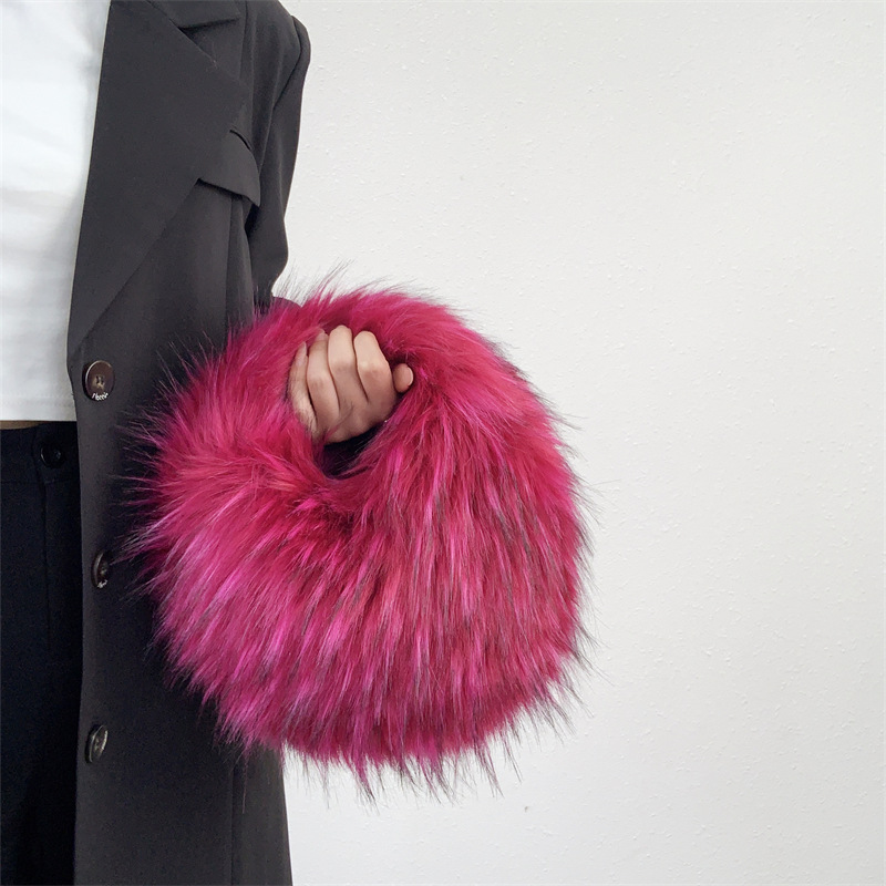 Moteriški krepšiai, meškėno kailio kamuoliuko formos pliušinis pankroko stiliaus rankinukas, madingas mergaitiškas, antrakursis