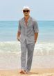 New Fashion Casual Long Sleeve Stand Collar Shirt Cardigan 2-Piece Versatile Men's Outfit Set