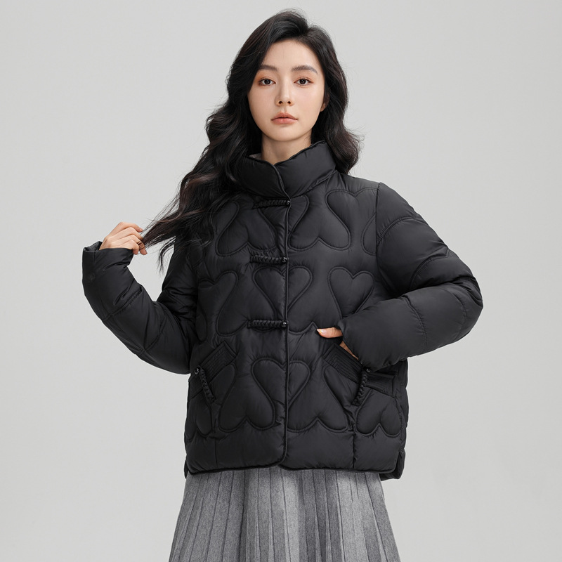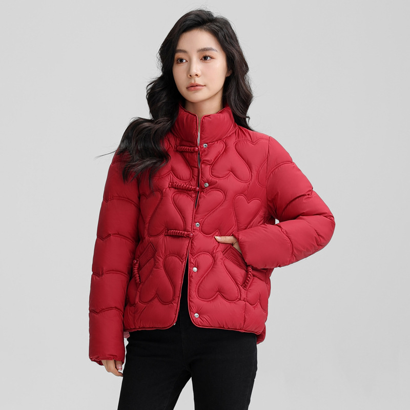 New Chinese style 2024 winter retro button down short fashion stand collar lightweight women's cotton Down jacket