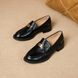 New Round Toe Chunky Heel Slip-On Leather British Style Metal Buckle Soft Sole Loafers Black Women's Shoes