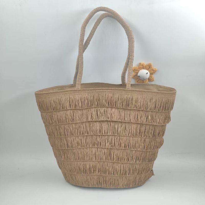 Rustic Handmade Straw Women's Handbag New French Seaside Tassel Beach Woven Bag