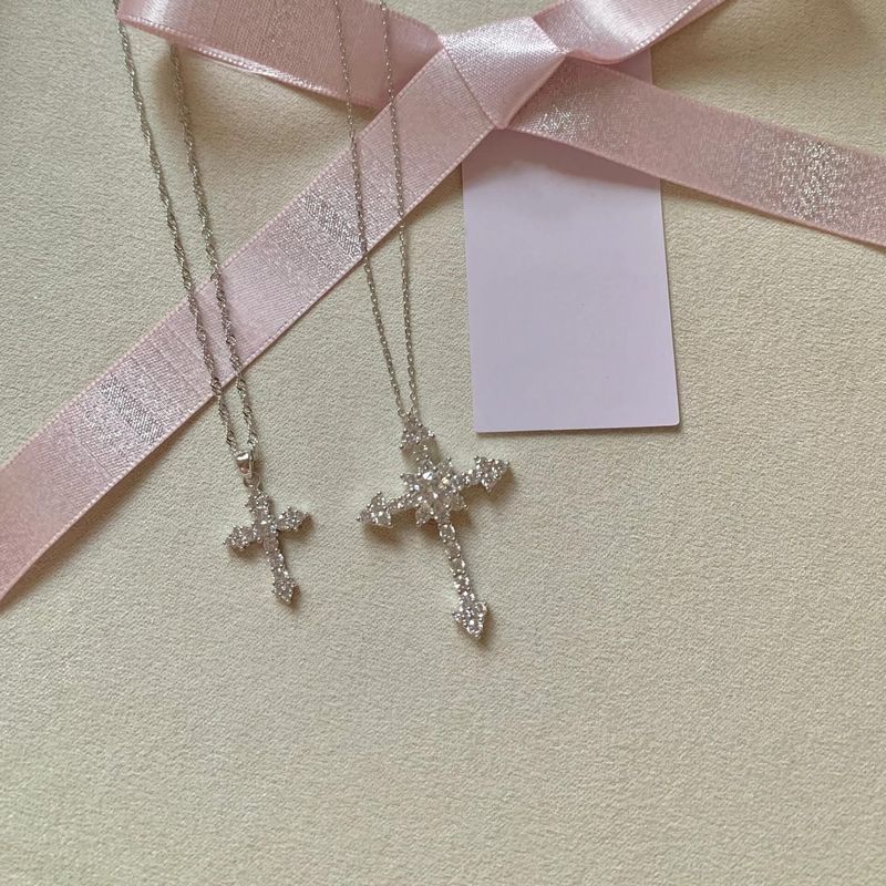 S Pure Silver Beauty God Cross Full Diamond Pendant Necklace Exquisite Sparkling Zirconia Light Luxury High Texture Diamond Set Clavicle Chain