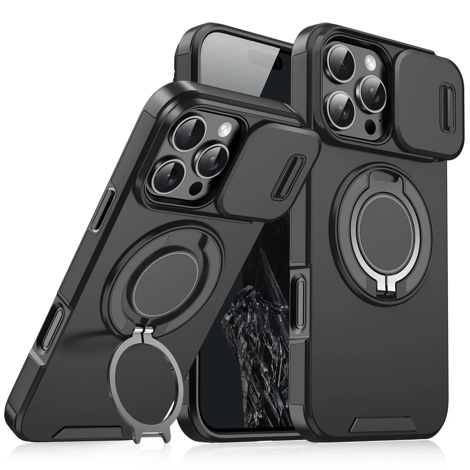 Slide Camera Lens Protection Case For iPhone 16 15 14 Plus 13 12 11 Pro Max 360 Degree Rotate Magnetic Ring Holder Cover Coque