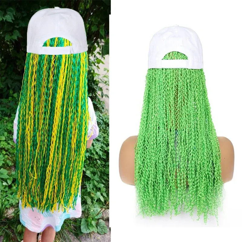 Spalvotos skrybėlės perukai 16 colių sintetiniai dėžutės formos perukai su beisbolo kepuraite ilgi sintetiniai pynimo plaukų priauginimas reguliuojamas kepuraitės skrybėlė