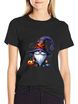 Pavasaris ir vasara europietiškos ir amerikietiškos naujos moteriškos laisvalaikio mados, laisvos viršūnės, marginti moteriški marškinėliai
