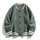 Baseball Collar Cardigan Sweater - Oversized Knit Pullover With Jacquard Design For Men & Women (Grey, Black, Army Green)