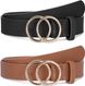 Suosdey Good Quality Soft Leather Ladies With Round Metal Buckle Two Rings Denim Belt For Women Width 3.3 Cm