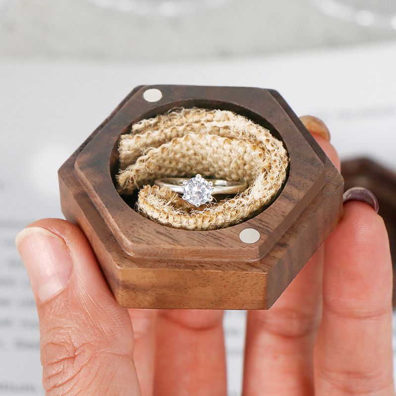 Walnut Wood Jewelry Ring Storage Wooden Engagement Gift Packaging Box