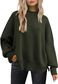 Women's Batwing Long Sleeve Knit Sweater - Oversized Round Neck Pullover With Side Slits, Soft Polyester Blend, Comfortable Loose Fit For Autumn