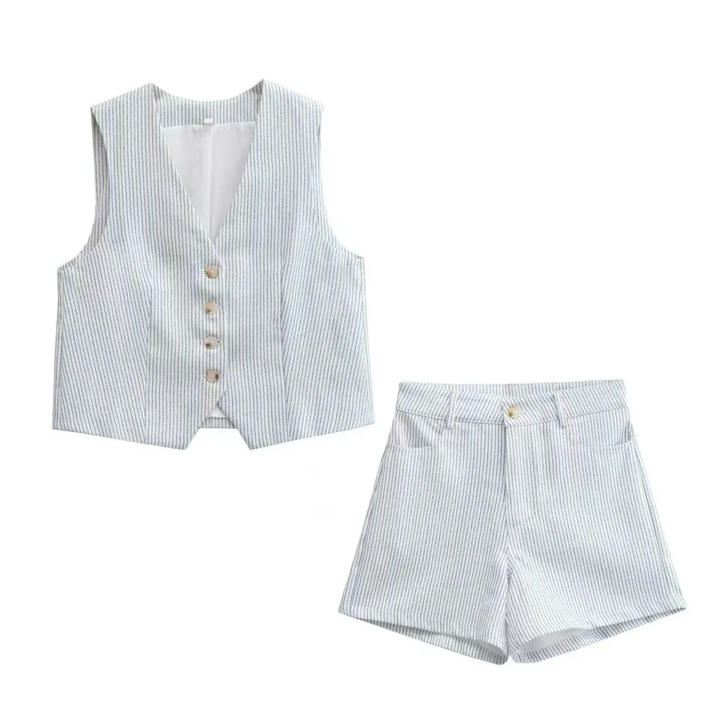 Women's clothing 2024 autumn/winter new fashion striped sleeveless vest shorts set